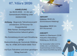 Der Kindergarten und die Volksschule Meiselding laden euch recht herzlich zum Faschingsumzug am Faschingsdienstag, den 17.02.2026 ein.