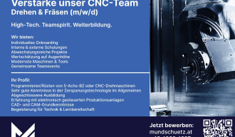 Die Firma Mundschütz in Althofen sucht Verstärkung im CNC-Team! Gleich bewerben! Weitere Stellenangebote und Informationen auf mundschuetz.at/karriere/