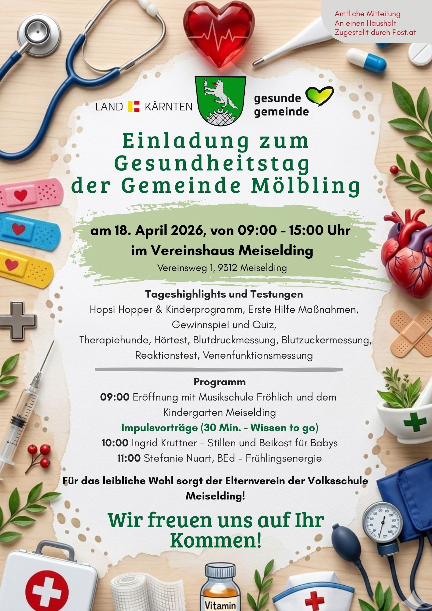 Einladung zum Gesundheitstag im Vereinshaus Meiselding