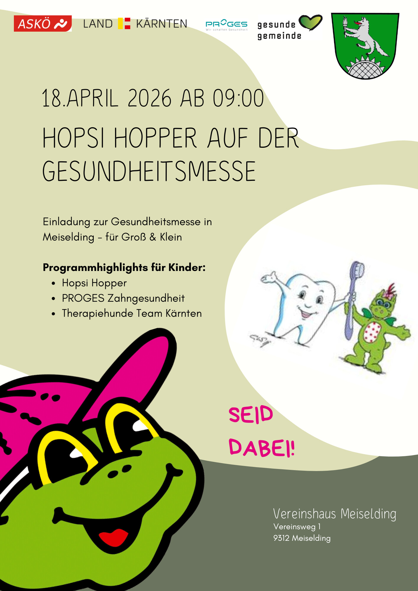 • ASKÖ Landesverband Kärnten Testet Reaktions- und Gleichgewichtsfähigkeit – spielerisch und spannend für jedes Alter! Für unsere Kleinen wartet Hopsi Hopper mit einem tollen Programm