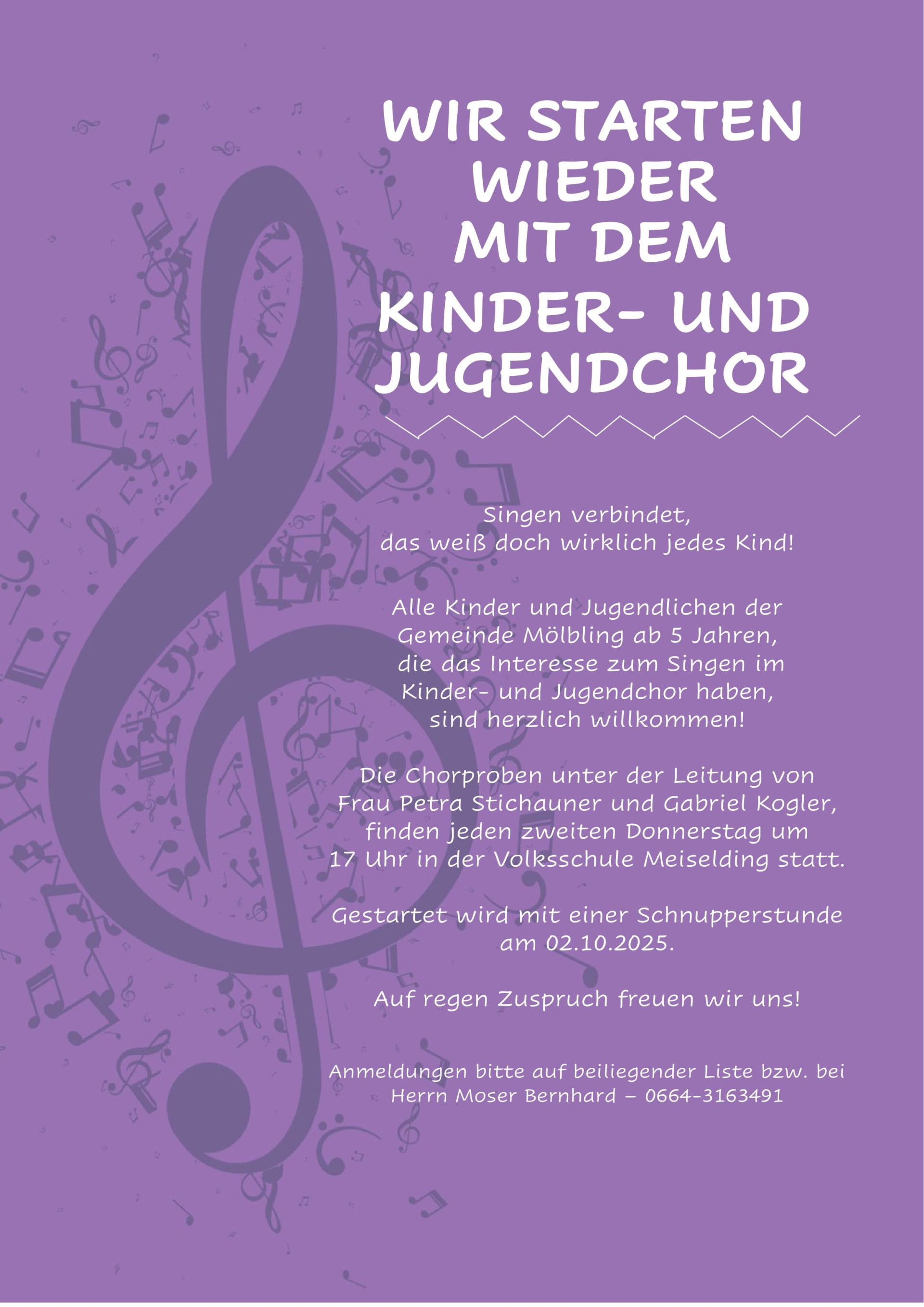 – Chorproben: jeden 2. Donnerstag, 17 Uhr, Volksschule Meiselding